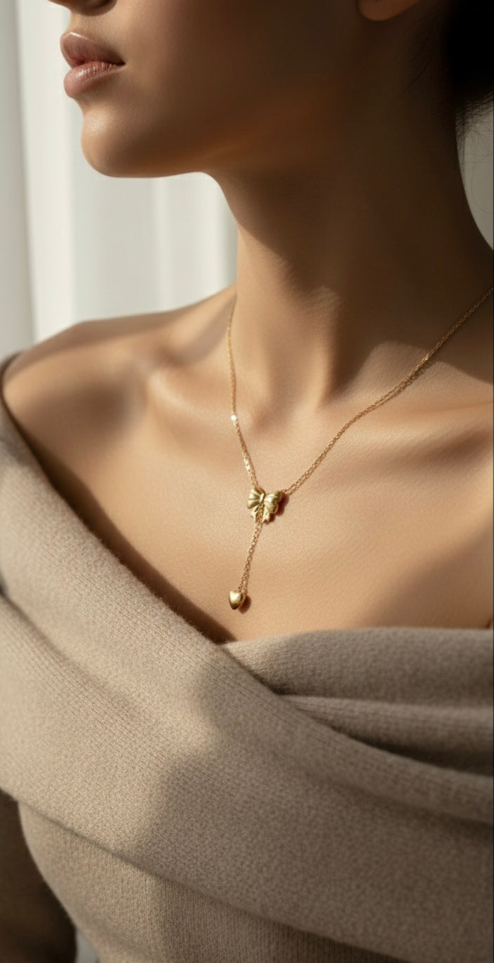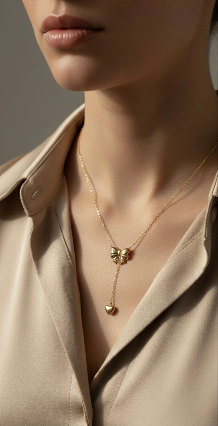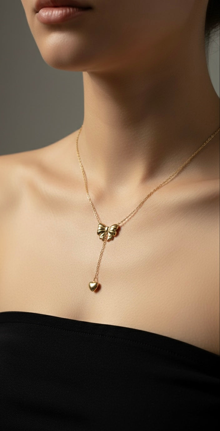 Ailaura Bowdrop Chain is designed with a delicate bow motif and a graceful heart drop, creating a soft, feminine statement. Crafted using premium 316 & 304 grade stainless steel, this chain is gold plated, anti-tarnish, and made for long-lasting shine.