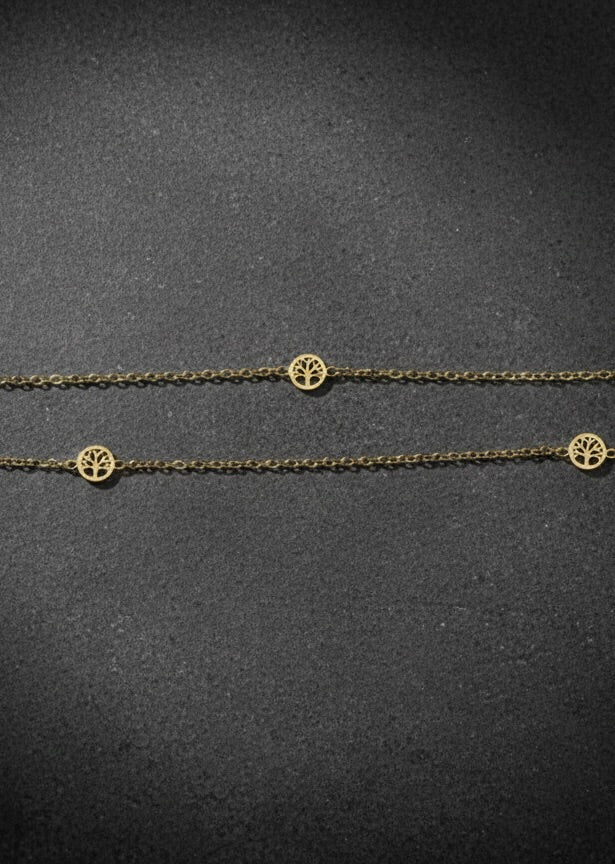 The Ailaura Elan Layered Anklet features a refined double-chain design adorned with delicate coin charms that sway gently with every step. Light-catching and beautifully minimal, it adds a soft, feminine touch to both barefoot elegance and styled looks.