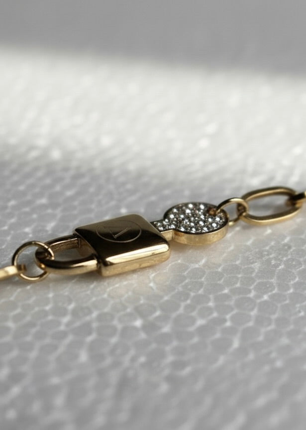 The Ailaura Luma Lock Bracelet is a refined expression of modern luxury, featuring a sleek chain silhouette accented with a subtle lock-inspired charm and a shimmering crystal detail.