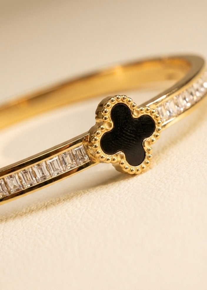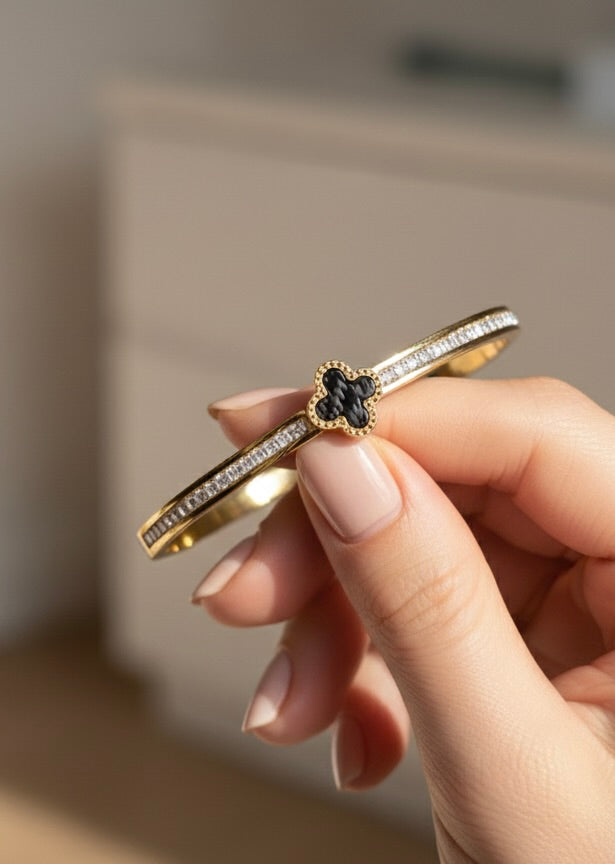 Confident, timeless, and effortlessly chic — the Noire Clover Bangle is a statement of modern luxury.