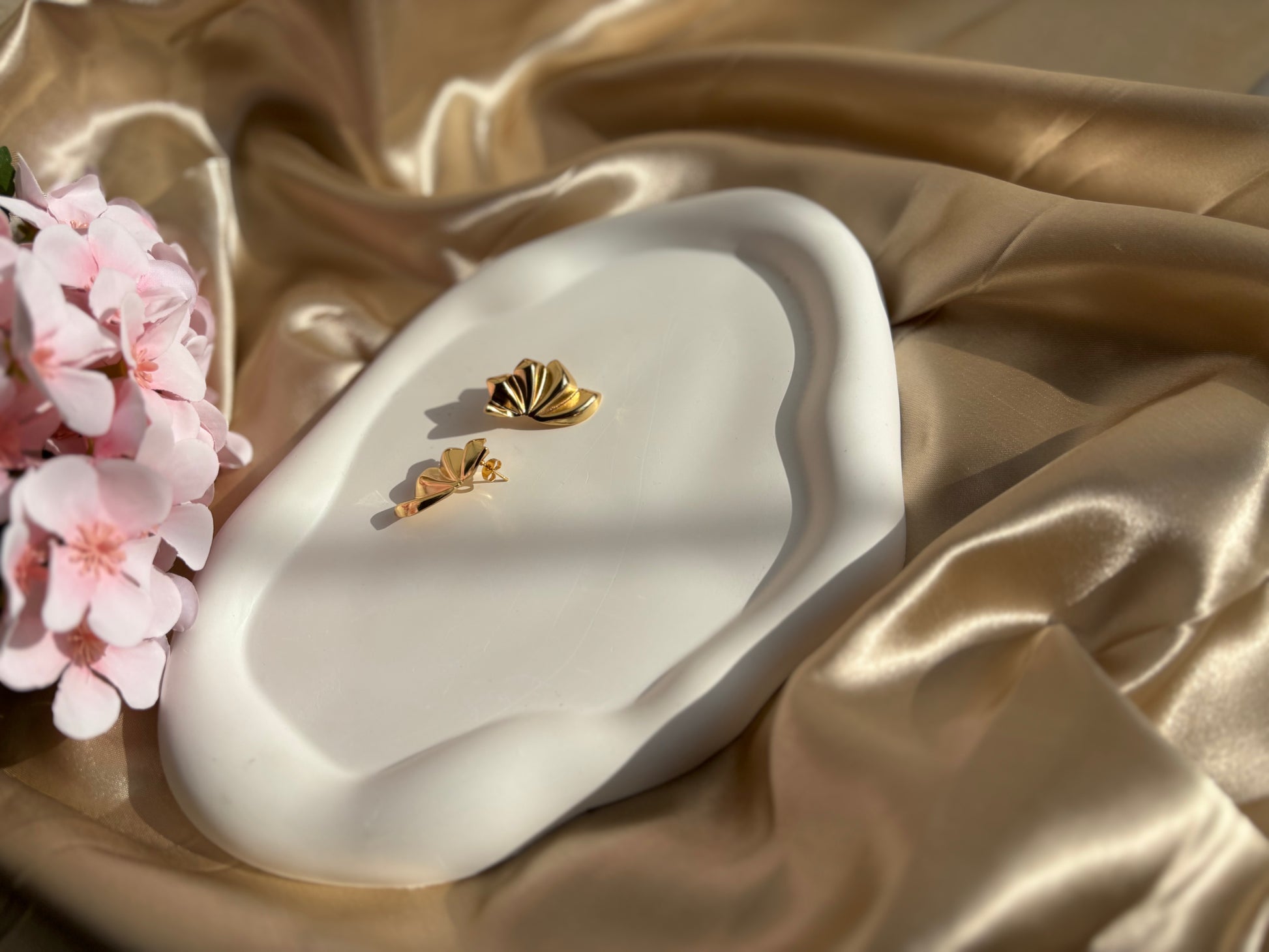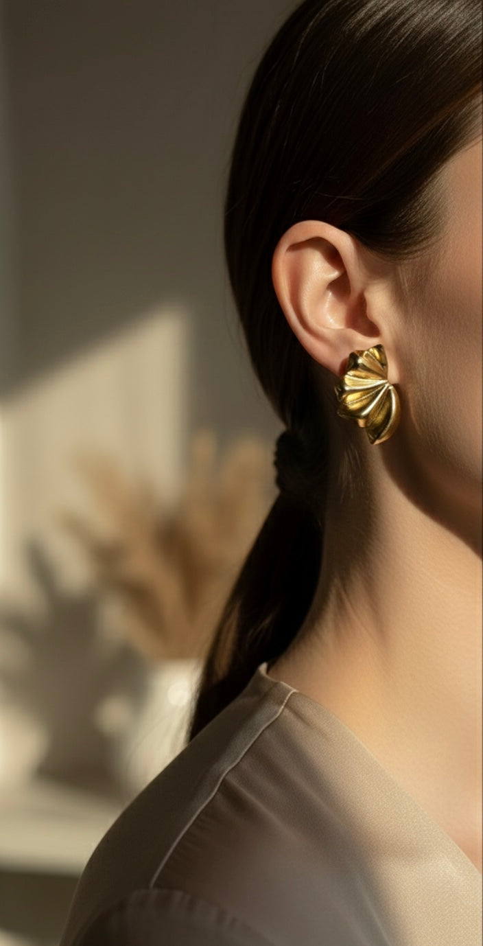 Ailaura Sculpted Bloom Earrings feature a bold petal-inspired sculpted design with a smooth gold finish that adds instant elegance to any look. Crafted using premium 316 & 304 grade stainless steel, these earrings are gold plated, anti-tarnish, and designed for long-lasting shine.